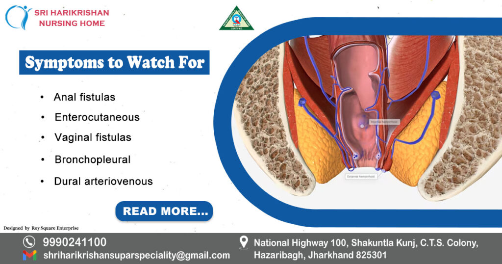 - Ongoing infections or abscesses (common in anal and enterocutaneous types)